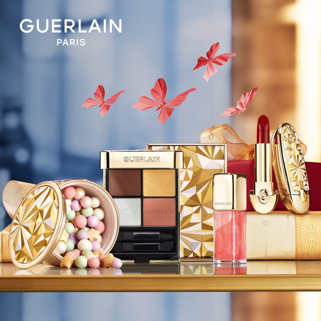 為了向冬夜的星空致敬,Rouge G鎏光星辰寶石唇膏,以摺紙紋理外殼展現兩款新色——Rouge Étoilé與Nude Songe,唇膏上也刻有精緻的星星裝飾,綻放星夜魅力;Ombres G 鎏金深邃四色眼影 - 鎏光星眸,以金、銀、啡、裸四色描繪節慶眼韻;Météorites幻彩流星鎏光星耀粉盒,帶來全新閃亮金色星形珠粉,充滿節日氣息;KissKiss Bee Glow Oil潤唇油注入蜂蜜光彩,獻上兩款閃亮新色;Terracotta Luminizer 古銅仿曬暖陽亮肌彩妝粉以玫瑰亮光為靈感,帶來前所未見漸變色彩的光影粉,閃耀著奪目的光芒,打造佳節專屬星耀妝容。