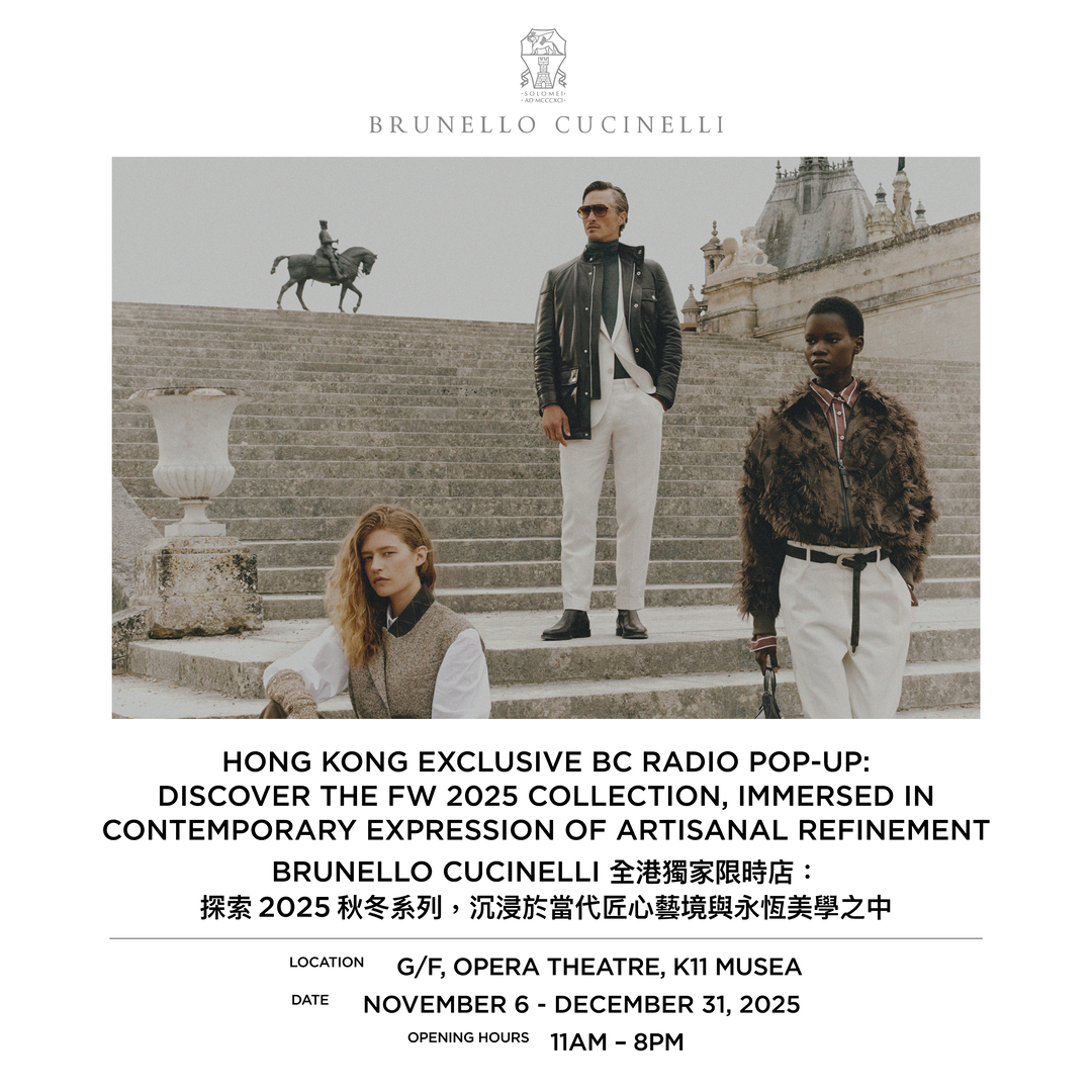 探索Brunello Cucinelli 2025秋冬系列,沉浸於當代匠心藝境與永恆美學之中,指定產品於K11 MUSEA 獨家發售。